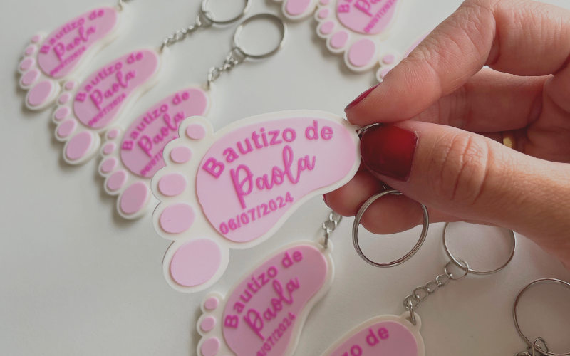 Recuerdo de bautizo en forma de pie personalizado (en imán o llavero)