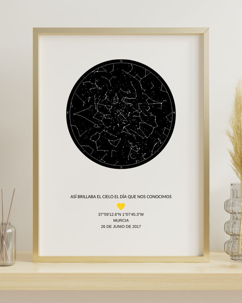 Esta lámina decorativa con las constelaciones únicas en el momento exacto de una fecha importante en un lugar concreto hacen que sea un recuero único que sólo ustedes sabrán.